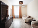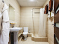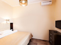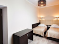 Номер «Повышенной комфортности» относится к категории номеров «Люкс». Состоит из двух комнат, выполненных в современном стиле. Интерьер яркий и запоминающийся, жить в номере одно удовольствие. Спальня укомплектована комфортабельным гарнитуром: двумя односпальными или одной двуспальной кроватью, тумбой, комодом с множеством отделений. Напротив спального места находится телевизор. Бра, которые находятся в изголовье кроватей, изготовлены в той же стилистике, что и люстра. Спальня, как и весь номер, оформлена в светлой цветовой гамме. В гостиной размещен тандем из мягкого кресла и дивана – прекрасное место для Вашего досуга. На полках серванта расположена посуда, которой Вы сможете воспользоваться. Большая ванная комната выглядит эффектно и аккуратно: здесь установлен душ, размещены банные принадлежности и средства личной гигиены.