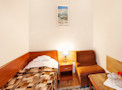 Однокомнатный номер «Стандарт», площадью 19 кв. метров - отличный вариант для уединённого проживания одного гостя. Все, что необходимо для приятного отдыха есть в номере: миниатюрная, но удобная кровать, тумбочка для хранения вещей, большое зеркало, телевизор, холодильник, кондиционер. Визуально интерьер располагает к благоприятному отдыху. Цветовая гамма, которая использована в оформлении номера, успокаивает, настраивает на позитивный лад. В номере есть балкон, выйдя на который Вы получите невероятный заряд бодрости на весь день: лучи солнца и свежий воздух преисполнят Вас вдохновением.