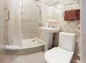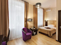 Номер «Повышенной комфортности» выглядит стильно. Здесь присутствует гармония света и цвета, различные текстуры удачно перекликаются между собой. Номер предназначен для одного гостя, но есть вариант размещения ещё одного дополнительного места. Помещение декорировано в спокойной цветовой гамме, но есть яркое визуальное «пятно» в виде велюрового кресла насыщенного сиреневого оттенка. Бра, торшер и люстра выглядят гармонично благодаря текстурным плафонам, оформленным в едином стиле. Большая кровать идеально подойдёт для расслабления: удобный матрас и мягкие подушки погрузят в здоровый ночной сон. Из необходимой технике в комнате есть кондиционер, мини-холодильник, телефон, телевизор. Для хранения ценных вещей предусмотрен сейф. Просторная ванная комната обустроена по высшему разряду: здесь имеется душ, средства личной гигиены, набор полотенец, тапочки.