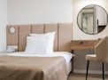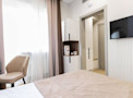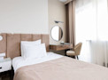 Добро пожаловать в наш уютный и комфортабельный однокомнатный номер санатория! Интерьер номера выполнен в стиле кофейных оттенков, что создает атмосферу уюта и спокойствия. Из окна номера вы сможете насладиться прекрасным видом на город Кисловодск и благоустроенную территорию санатория, чему можно наслаждаться прямо из удобства номера.
