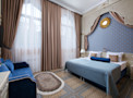 Предусмотрено и наличие большого шкафа для одежды, где с легкостью можно разместить все привезенные с собою вещи. А удобный диван цвета индиго станет для вас уютным местом для ежевечерних посиделок за кружечкой ароматного кофе или чая.