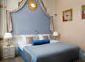 Роскошный номер для двоих не только поразит вас своей изысканностью, но и подарит максимально комфортные условия проживания. Шикарная двуспальная кровать размера King size просто создана для того, чтобы обеспечивать крепкий полноценный сон, а небольшие стильные тумбы позволят хранить необходимые личные вещи на расстоянии вытянутой руки.