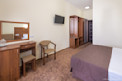 Номер оснащен всем необходимым для современного путешественника: телевизор с цифровым ТВ, высокоскоростной Wi-Fi, эффективная сплит-система и мини-холодильник. Электронные замки и система безопасности обеспечивают ваше спокойствие. Пространство организовано продуманно: удобный шкаф-купе, письменный стол, багажная тумба и уютный пуфик создают домашнюю атмосферу.