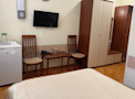 «Однокомнатный одноместный номер малый» – олицетворение уюта и простоты. Лаконичный интерьер – это настоящая находка для тех, кто ценит минимализм и практичность. Номер не перегружен лишними деталями, компактная мебель отлично вписывается в общую концепцию. Светлый дизайн помещения придает номеру аккуратности, делая его визуально больше и наполняя ощущением воздушности. Из мебели в номере установлена кровать, шкаф, стол и стулья. Из техники – телевизор, холодильник. Есть сейф, в который можно поместить личные вещи. Также, в Вашем распоряжении минимальный набор посуды. В номере имеется ванная комната с душем, ТВ, Wi-Fi. Мягкая кровать обеспечит продуктивный отдых, а вид из окна вдохновит на мини-путешествие по курортному городу.