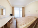 Номер однокомнатный, а для проживания предоставляется большая двуспальная кровать. Здоровый сон будет обеспечен благодаря наличию ортопедического основания, которое не только поддерживает правильное положение тела во время сна, но и следит за здоровьем позвоночника.