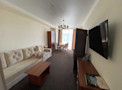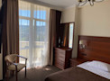 Просторный «Двухкомнатный двухместный номер повышенной комфортности» выполнен в классическом стиле. В цветовой палитре преобладают спокойные оттенки, которые благоприятно влияют на общую атмосферу номера. Отдельная спальня и гостиная позволяют разделить пространство на зону отдыха и зону досуга. В гостиной размещен большой диван благородного оттенка, напротив которого расположен большой телевизор с плоским экраном. Во всем номере предусмотрено ковровое покрытие. В гостиной можно разместиться небольшой компанией, воспользоваться набором посуды, выпить ароматного чая за приятной беседой. Для этого здесь предусмотрен стол, который идет в комплекте с удобными стульями. Яркое южное солнце будет проникать в большие окна, наполняя помещение светом.