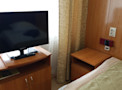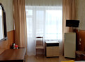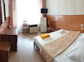 Светлая отделка стен и пола помогает сохранить обстановку умиротворённости и покоя. Уют в номере создаёт деревянная мебель и текстиль пастельных тонов – занавески, ковёр, покрывала.