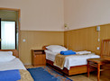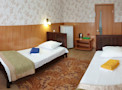 Возле каждой кровати есть тумбочка и подвесная лампа. Имеется общий телевизор, холодильник и электрический чайник, несколько розеток, бесплатный интернет через Wi-Fi. Как и во всех наших номерах, есть отдельный санузел с душевой кабиной и умывальником, в кране всегда течёт горячая и холодная вода.