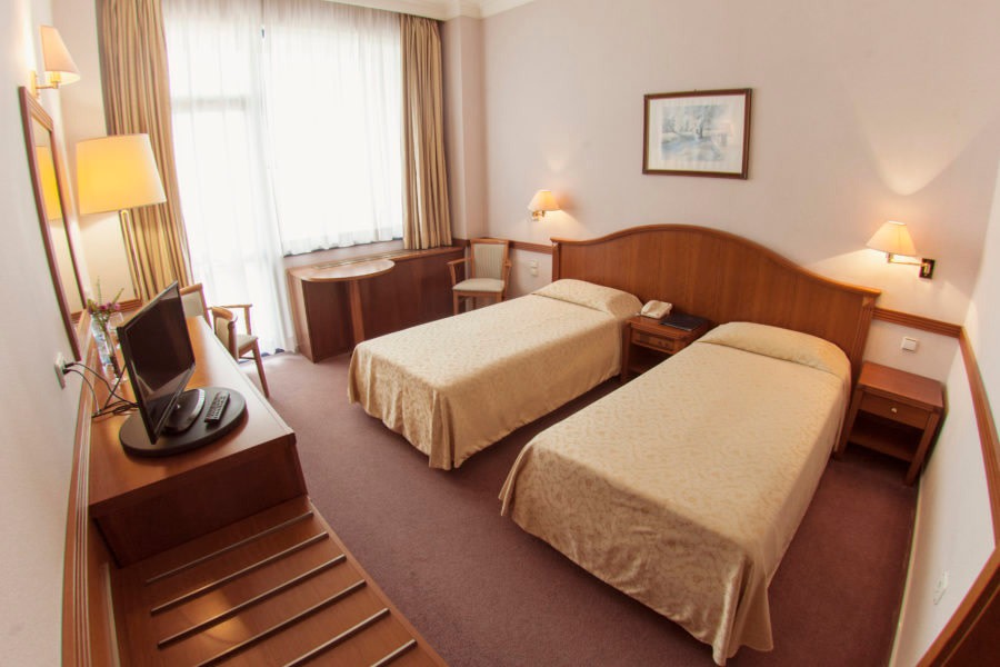 В номерах данной категории установлены две односпальные или одна двуспальная кровать. Также предусмотрены вместительный шкаф, где гости санатория могут разместить свои вещи, настенные светильники, тумбочки, стулья, стол, комод, небольшой холодильник и телевизор с плоским экраном.