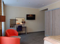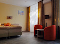 Уютный «стандарт» порадует своих постояльцев не только роскошным интерьером, выполненным в изысканных коричневых тонах, но и максимальной комфортабельностью. Немаловажной фактором удобства становится тщательно подобранная меблировка, включающая удобную двуспальную кровать, изящные тумбы, вместительный шкаф-купе, буфет и туалетный столик. Для вашего удобства здесь предусмотрена каждая деталь.