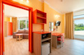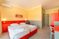 В номере предусмотрены удобные кровати с ортопедическими матрасами, прикроватное освещение, рабочая зона и вместительный шкаф для хранения вещей. Для дополнительного удобства гостей установлены кондиционер и современная мебель, что делает отдых максимально комфортным.