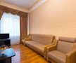 В номере есть всё необходимое для комфортного проживания: двуспальная кровать, шкаф, кондиционер, телевизор, электрический чайник, фен, санузел с ванной, полотенца и отопление. Пространство оформлено в спокойных тонах, создающих уютную атмосферу.